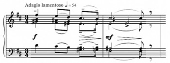 Voorbeeld 2b – Tsjaikovski, Symfonie nr. 6, Pathétique, deel IV, begin