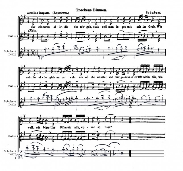 (‘Ihr Blümlein alle’ van Schubert omgezet voor fluit door Böhm in ‘Die Flöte und das Flötenspiel’ en door Schubert in zijn manuscript van de ‘Introduktion und Variationen’, D 802)