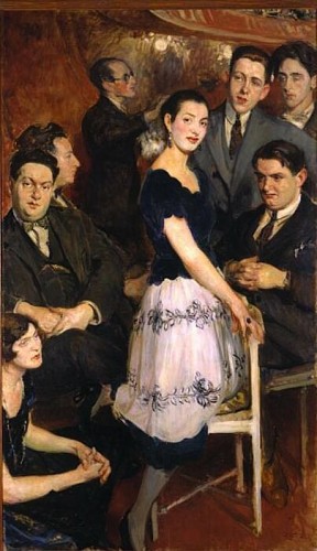 Jacques-Emile Blanche, Le Groupe des Six, 1922, Musée des Beaux-Arts, Rouen. In het midden Germaine Tailleferre, linksonder pianiste Marcelle Meyer, naar boven en naar rechts: Darius Milhaud, Arthur Honegger, Louis Durey, Francis Poulenc en Jean Cocteau. Zittend rechts: George Auric.